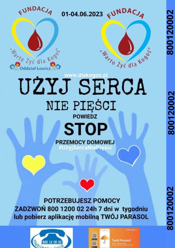 Czytaj więcejFundacja ,, Warto Żyć Dla Kogoś” serdecznie zaprasza do wzięcia udziału w ogólnopolskiej akcji społecznej pt.: ,,UŻYJ SERCA, NIE…